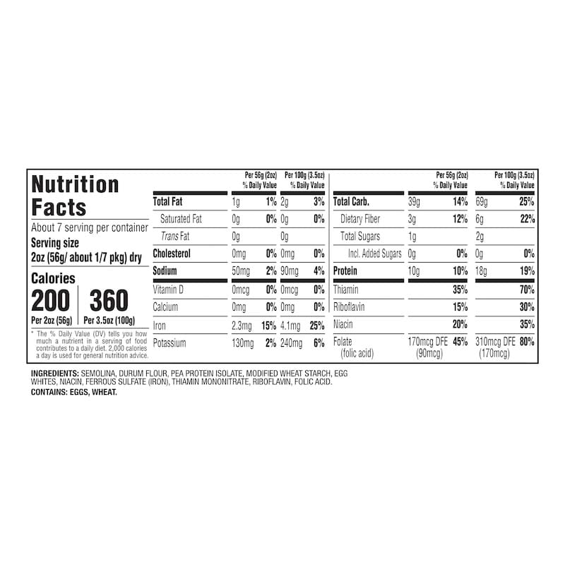 No Yolks Protein Fettuccine is made with semolina, durum flour, and egg white - a good source of protein in an elegant wide noodle format that makes any dinner feel a little more worth it.